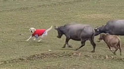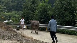 Chú trâu quấn quýt cô chủ như hình với bóng