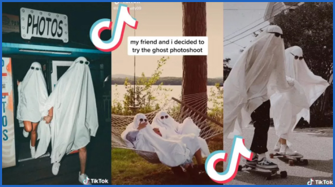 Những ngày gần đây, nhiều nền tảng mạng xã hội như TikTok, Instagram bắt đầu rộ lên trend "giả ma", như lấy tấm vải hoặc drap trải giường màu trắng, khoét lỗ ở mắt, đeo kính râm... rồi nhảy múa hoặc tạo dáng chụp ảnh. Với hashtag #ghostphotoshoot, hơn chục ngàn clip TikTok đã thu về hơn 2,5 tỉ lượt xem, tạo thành một trào lưu mang tính xu hướng trên nền tảng ứng dụng này.