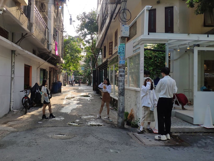 Chia sẻ với Tuổi Trẻ Cười, Quỳnh Mon (21 tuổi, SV Hutech) cho biết: "Các quán bây giờ "nịnh" khách lắm ạ. Họ set up bối cảnh đẹp khỏi chê luôn. Tụi em thường canh giờ đi vào buổi sáng hoặc xế chiều để có ánh nắng đẹp nhất nhưng lần nào cũng đông kinh khủng, chờ đến lượt chụp cũng mệt".