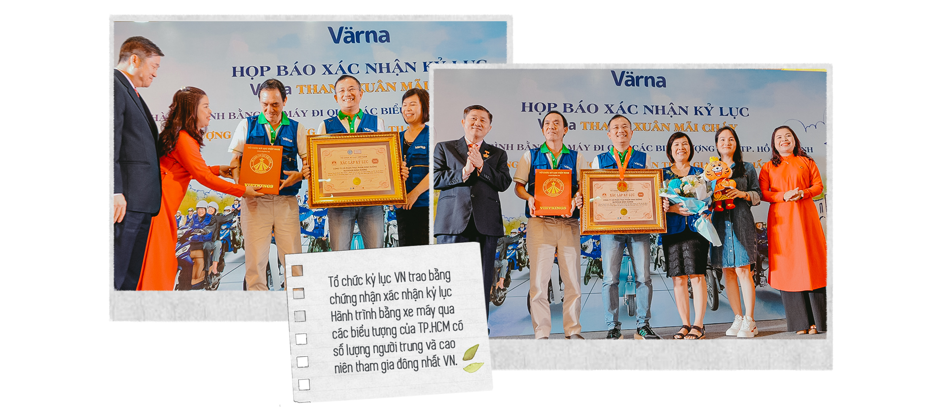 Chuyến đi này đã được xác lập kỷ lục "Hành trình bằng xe máy đi qua các biểu tượng của TP.HCM có số lượng người trung và cao niên tham gia đông nhất Việt Nam".