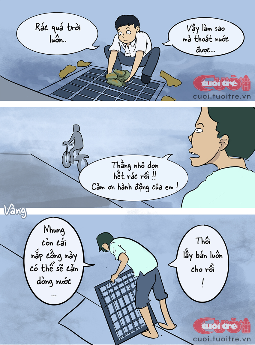Chuyện về thằng nhỏ dọn rác trước miệng cống thoát nước
