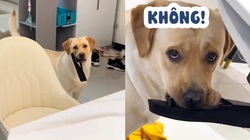 Để được ăn kẹo, cô chó đến thơm má 3 lần để chiều lòng cậu chủ.