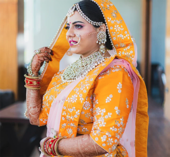 Các cô dâu Ấn Độ nếu thừa cân thường ám ảnh "thuế béo phì". (Ảnh: VICE)"Trang phục Lengha được cửa hàng niêm yết giá cả đàng hoàng, tuy nhiên họ nói tôi phải trả thêm tiền nếu muốn mẫu này. Bởi vì cửa hàng sẽ cần phải mua thêm vải và họa tiết để trang trí", Sally nói trong tức tối.