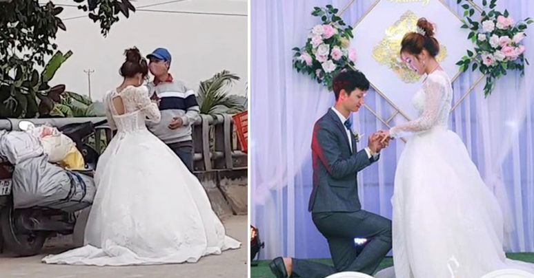 Trước đó, một cô dâu cũng từng khiến dân mạng được phen bất ngờ khi chạy ra nhận ship dù sắp đến giờ cử hành hôn lễ. Nhiều lời khen đã dành cho hành động của cô dâu khi ngại mang tiếng "bom hàng".
