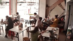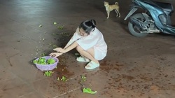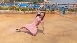 Cô gái để thùng xốp phía trước, không bẻ được lái đã lao xe máy xuống dòng kênh đen khiến nhiều người xem phì cười.