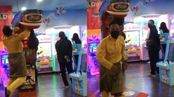 Cô gái tung cú đấm uy lực làm treo máy đo lực khiến nhiều người xem ngỡ ngàng.