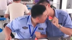 Cô gái đứng trước mặt kính cường lực một chiều để trang điểm nhưng không hay biết rằng bên trong tòa nhà có hai chàng trai đang ngơ ngác nhìn.
