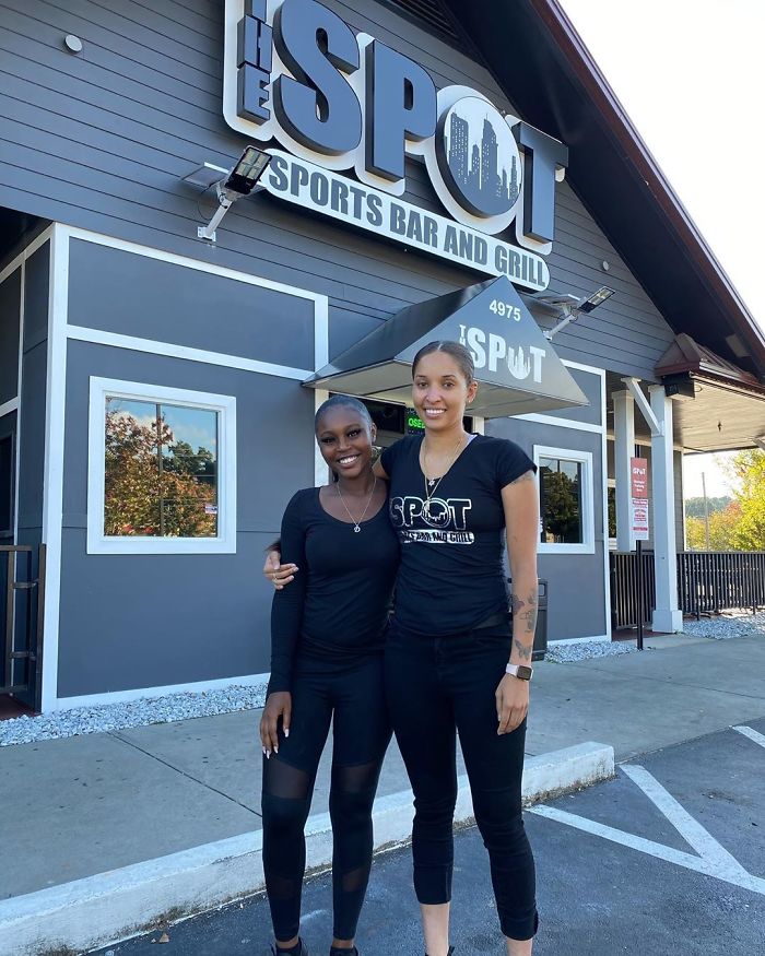 Kayallah Jones (trái) và chủ nhà hàng Dakara Spence.Video nhanh chóng nhận được hơn 1,2 triệu lượt xem trên Instagram, cùng với 1,5 triệu lượt trên TikTok và Twitter. Cư dân mạng đã cảm nhận được niềm hạnh phúc và phấn khích của cô ấy trong video.