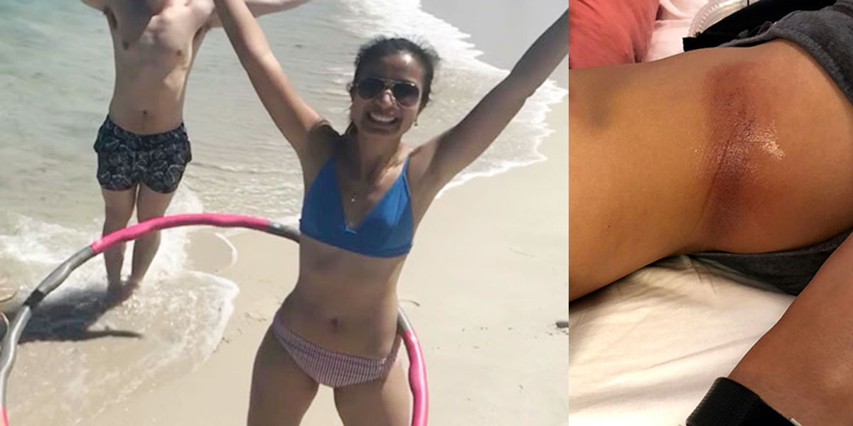 Tai nạn lớn nhất trong quá trình lập kỷ lục của Jenny Đoàn là ở giờ thứ 64, do ma sát quá lâu với vòng lắc, một phần hông của cô bắt đầu chảy máu. Ảnh chụp cho thấy, sau khi hoàn thành kỷ lục, một phần hông của Jenny Đoàn đã bầm tím.
