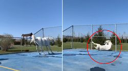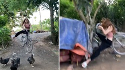 Cô gái đi xe đạp xuống dốc bất ngờ bị mất phanh khiến cô không kiểm soát được tốc độ và lao vào bụi cây.