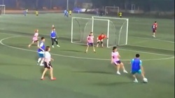 Cô gái tung cú sút như nã đại bác từ giữa sân, đưa bóng bay thẳng vào góc cao khiến thủ môn đối phương bất lực.