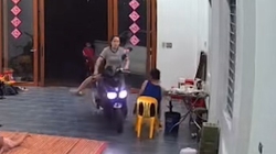 Cô gái lộn santo vào đống rơm khi chơi trò trượt cỏ