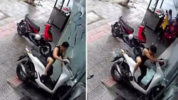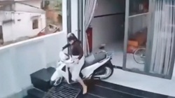 Cô gái 'não cá vàng' cố dắt xe SH lách qua khe cửa với ôtô