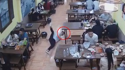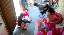 Cô gái ngã dập mông khi lau nhà