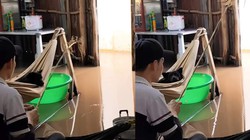 'Cơn mưa có một đêm mà nước ngập, cá bơi vào trong sân nhà luôn, khỏi phải đi chợ mua đồ nấu cơm mọi người ạ', tác giả tâm sự khi chia sẻ video.