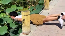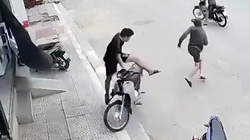 Cô gái phản xạ xuất thần khi thanh niên tông xe máy móp cửa sắt