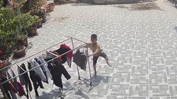 Cô gái sung sướng khi tung hứng bịch rác vào được thùng