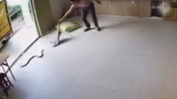 Thấy người đàn ông cầm cây chổi loay hoay không bắt được con rắn, cô gái tay không liền đến tóm con vật và mang đi vứt.