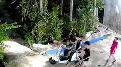 Sau một hồi tập đi chật vật, cô gái không làm chủ được ga, lao gọn chiếc xe đạp điện xuống mương nước.