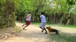 Cô gái vứt xe máy thoát thân khi đối đầu xe tải