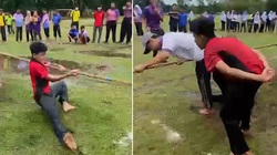 Mặc dù đã được cô giáo cổ vũ hết mình nhưng các trò vẫn kéo co thua.