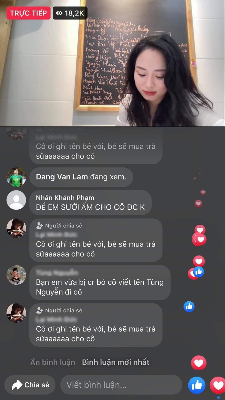 Như buổi livestream dài 2 tiếng gần nhất, cũng là lớp học thu hút nhất với lượng "học viên" lên đến hơn 20 ngàn, nhiều người vô tình bắt gặp hàng loạt cái tên nổi tiếng như PewPew, Độ Mixi hay thủ môn Đặng Văn Lâm... cũng nhấn nút xem. Trong khi cô vẫn thao thao bất tuyệt về con lắc lò xo thì học trò ở phía sau màn hình cứ nhanh nhảu hỏi "quãng đường, vận tốc để đến được trái tim cô" hay "định lý nào để có thể trở nên xinh đẹp, duyên dáng như cô giáo vật lý"?!