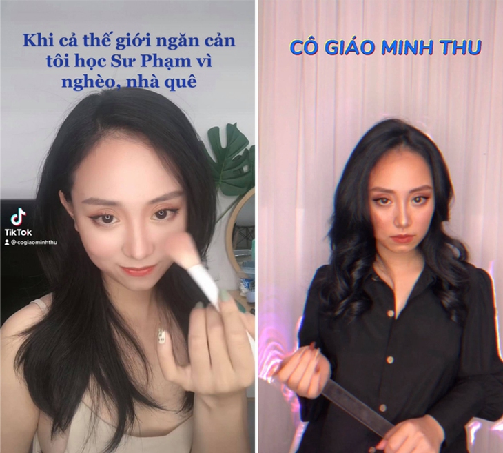 Tuy là cô giáo vật lý nhưng cô Minh Thu chẳng hề "nhạt" hay "khô" chút nào. Trái lại, cô tươi tắn và "teen" lắm chứ chẳng thua Gen Z nào. Trên Facebook, cô mô tả mình là "Minh Thu Cằm Chẻ", với "tuổi trẻ năm ấy, thanh xuân trôi vèo". Còn trên TikTok, cô có dòng giới thiệu "học Vật lý thế hệ Gen Z", như chạm trúng tâm lý của không ít bạn trẻ.