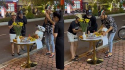 Hai thanh niên xuống ô tô, chắp tay vái lạy rồi lấy gạo muối rắc và hóa vàng giúp chủ nhà xong mới giật gà cúng.