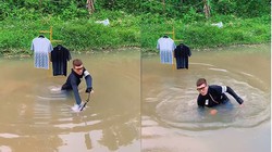 Cô nàng nhảy hăng say đến khi có người nhắc mới biết điện thoại mình đang 'tắm hồ bơi'.