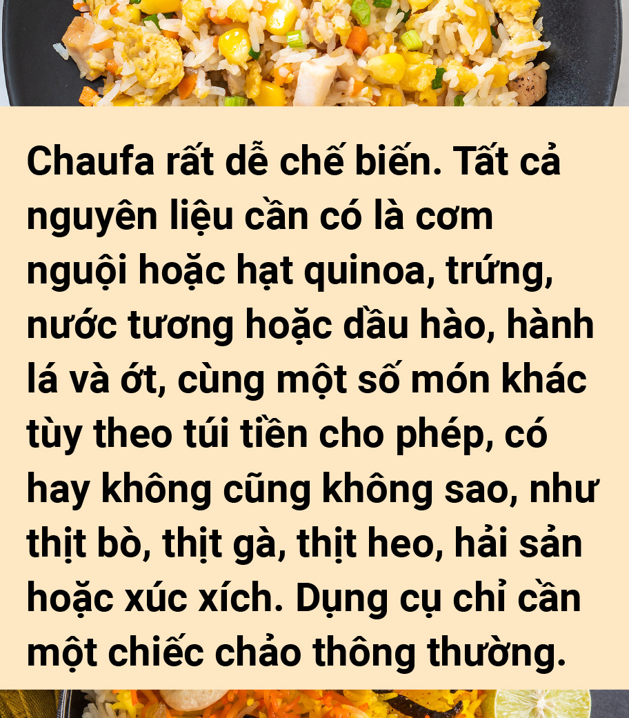 Khâu chuẩn bị dễ dàng kèm theo tính linh hoạt là một phần lý do khiến chaufa ghi dấu ấn trong truyền thống ẩm thực của Peru.