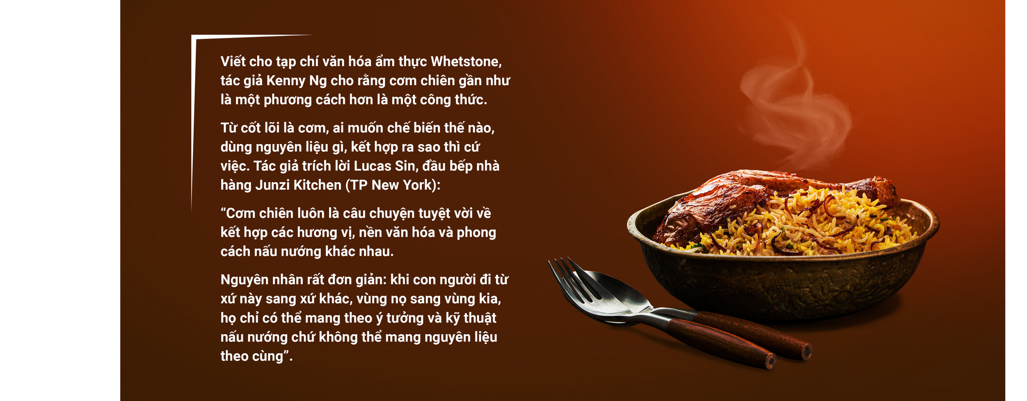 Việc cơm chiên đông lạnh - món ăn với cái tên nghịch hợp (chiên nhưng lạnh) - ngày càng được ưa chuộng cho thấy cách chế biến và thưởng thức một món ăn có thể vừa đi rất xa so với những ý tưởng ban đầu vừa giữ được hồn cốt của nguyên bản ra sao.