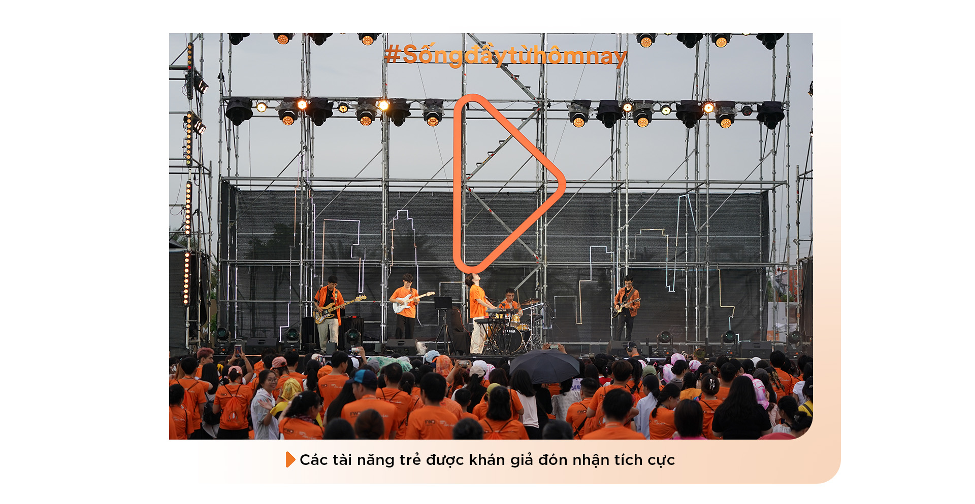 Không dừng lại ở đó, sân khấu chính là nơi tỏa sáng của các ban nhạc trẻ tại TP.HCM. Đứng trước hàng ngàn khán giả, các bạn trẻ không chỉ trình diễn ca khúc của mình mà còn mang theo đam mê, nhiệt huyết và bản lĩnh, thổi bùng không khí phấn khích của toàn sự kiện.