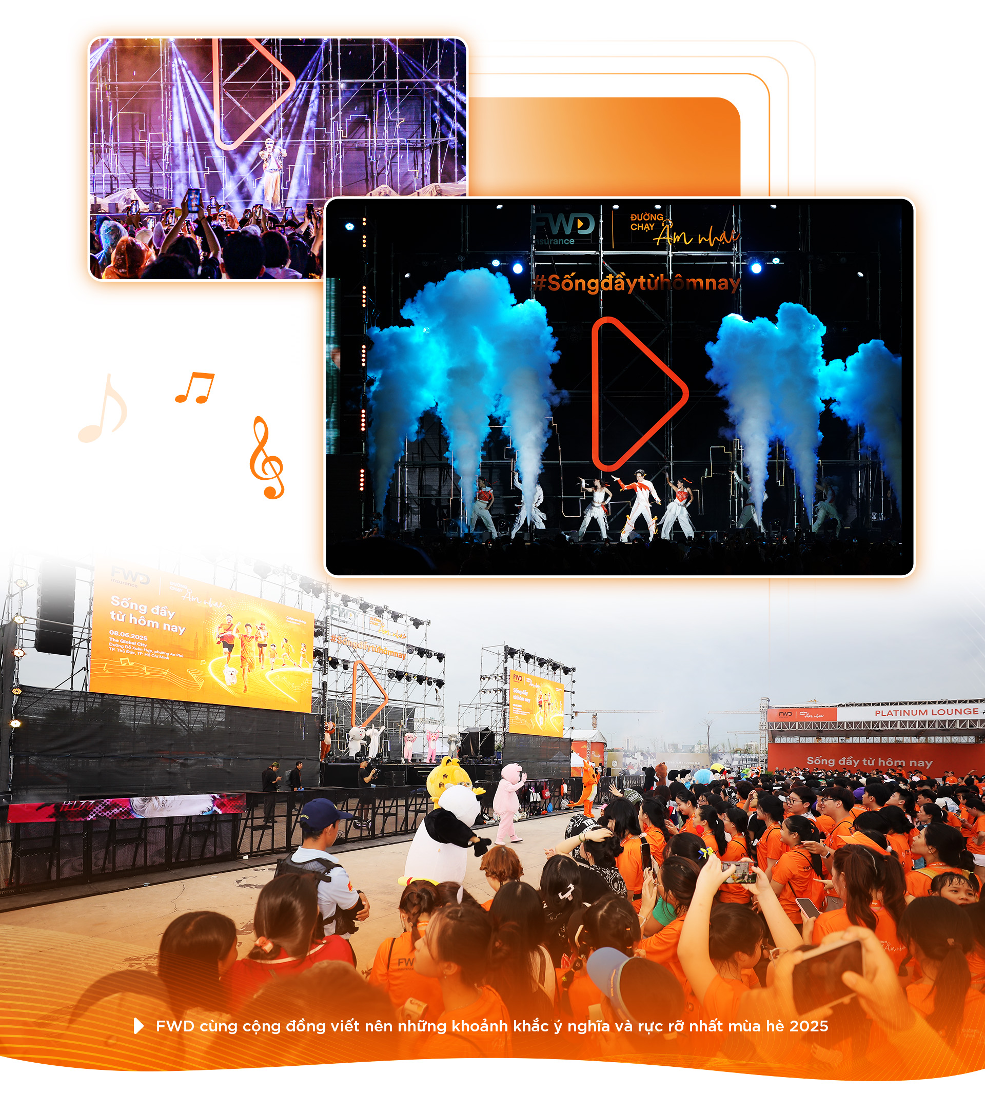 Với âm nhạc làm nền tảng kết nối đặc trưng, "FWD Đường chạy âm nhạc" tiếp tục là sự kiện độc đáo của thương hiệu để gắn kết cùng cộng đồng - nơi mọi người cùng nhau sống tích cực, sống đầy theo cách riêng của mình.