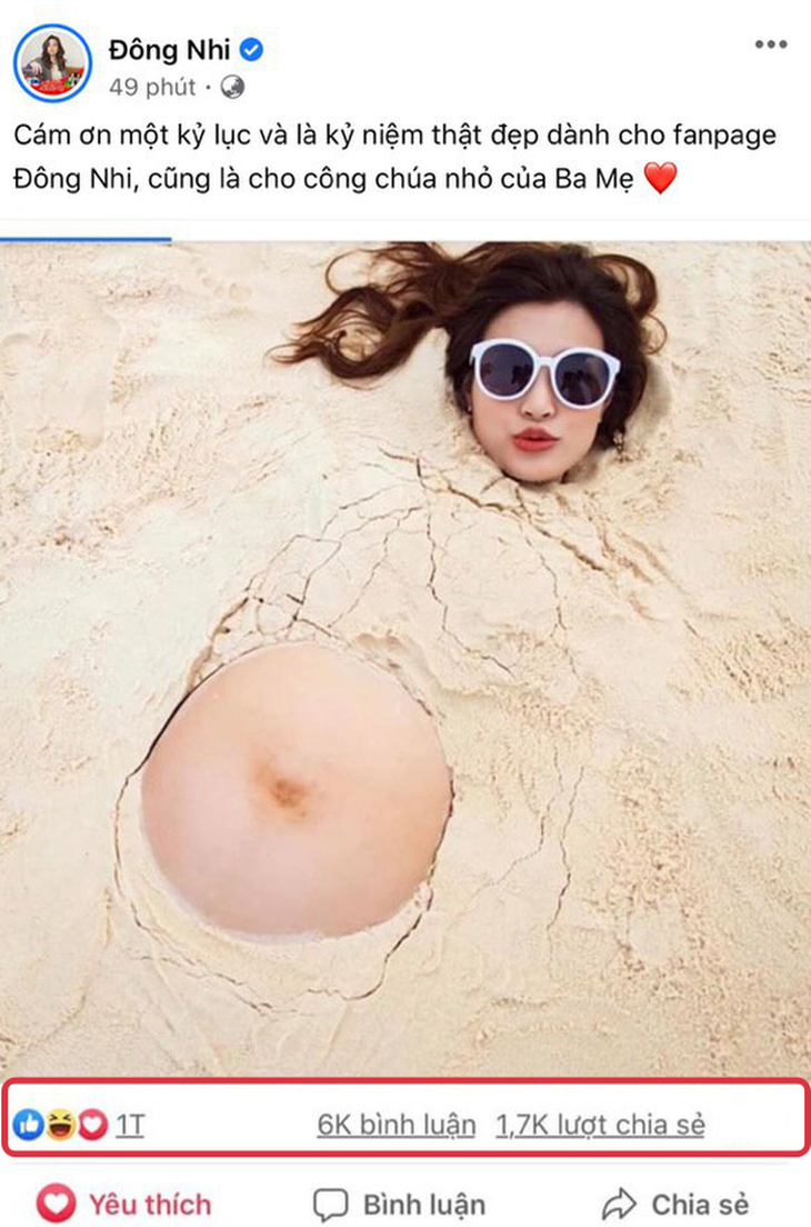 Trước đó, bức ảnh nữ ca sĩ khoe bụng bầu ở tháng thứ 7 đã đạt 1 triệu like nhưng phải mất gần 2 ngày mới đạt được "độ phủ" đó.
