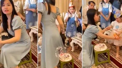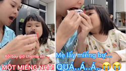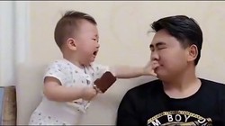 Sau khi bị bố cắn hết cây kem, bé gái khóc toáng rồi cạy miệng bố để bắt đền.