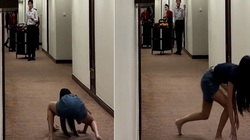 Ông bố đang nằm ngủ được một phen hú hồn hú vía khi con gái nằm dưới đất giả ma hù.