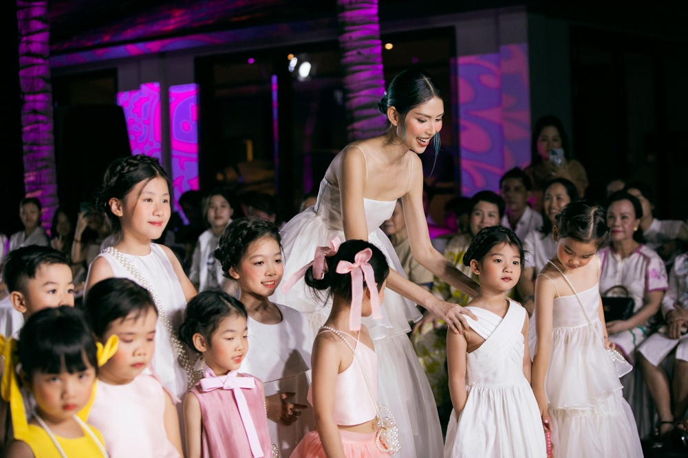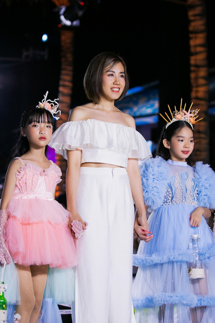 Người mẫu Thùy Dương dắt dàn mẫu nhí sải bước trên sàn runway. Với show diễn có qui mô siêu "khủng", qui tụ khoảng 1.000 người mẫu trưởng thành và thiếu nhi tham dự, Destination runway fashion week 2022 đã có đêm mở màn ấn tượng với loạt trang phục độc đáo đến từ 8 nhà thiết kế trẻ, thương hiệu thời trang trong nước.