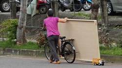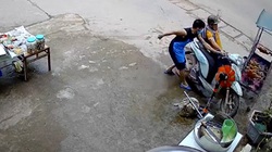 Tài xế xe ba gác đứng hình khi 2 chiếc tủ lạnh rơi xuống đường vì quên căn chỉnh chiều cao với giàn hoa giấy bắc ngang cổng.