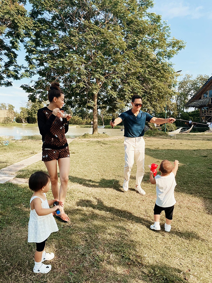 Hồ Ngọc Hà - Kim Lý đưa hai con song sinh đi chơi tại khu du lịch sinh thái điện ảnh của một người bạn dịp lễ 30/4 – 1/5.