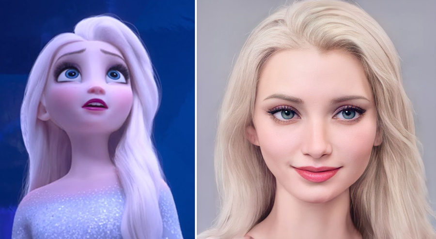 Nữ hoàng băng giá Elsa trong phim Frozen.Hầu hết chúng ta yêu thích phim hoạt hình. Chúng tạo thành một ký ức vô cùng đẹp đẽ của tuổi thơ, dạy chúng ta những bài học quý giá, đưa chúng ta vào những cuộc phiêu lưu mà chúng ta chỉ có thể thấy trong mơ. Và ai cũng có một nhân vật hoạt hình yêu thích, để ngưỡng mộ, để muốn trở thành giống như vậy. Nhưng bạn đã bao giờ ước rằng các nhân vật hoạt hình có tồn tại trong đời thực? Thật khó để liên tưởng đến một người có các đặc điểm được hoạt hình hóa quá mức — đôi mắt to, vòng eo siêu nhỏ, v.v... Nhưng chờ đã, một nghệ sĩ được biết đến trên mạng xã hội với nickname Toyboyfan, đã quyết định cho chúng ta thấy các nhân vật Disney nổi tiếng sẽ trông như thế nào nếu họ là có thực.