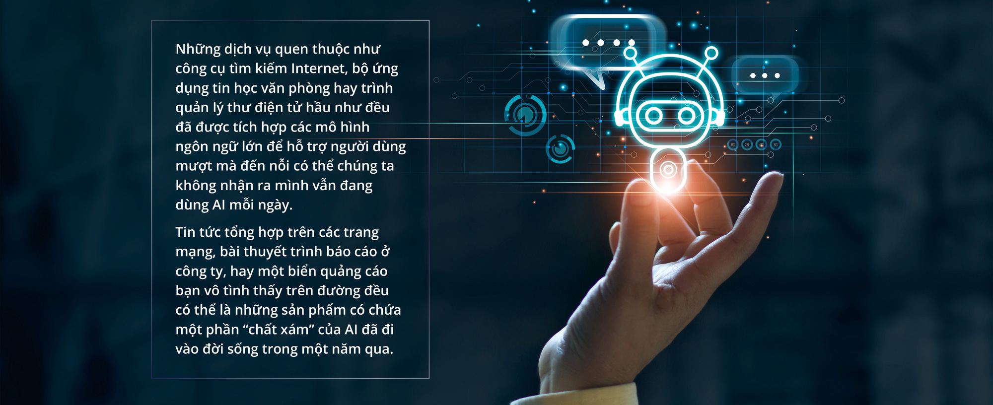 Đây là năm mà 100 triệu người khắp thế giới đùng một cái có thể thực sự sống, chơi và làm việc cùng AI nhờ có ChatGPT - đại diện nổi bật nhất của AI tạo sinh.