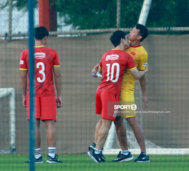 Nam cầu thủ Nghệ An từng có lần bị bắt gặp “hôn cái chóc” Tấn Trường trên sân tập cùng đội tuyển Việt Nam.Trước khi đoạn clip "bóc phốt" Công Phượng được tung ra, nam cầu thủ gốc Nghệ An còn từng bị phát hiện có "hành động tình cảm" với thủ thành Đồng Tháp ngay trên sân cỏ, cũng chẳng kém phần hài hước như khoảnh khắc vui đùa trên.