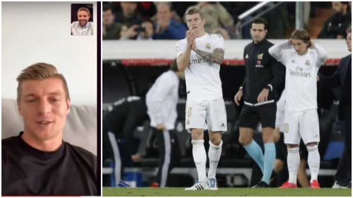 Hình ảnh Kroos video call được truyền đi trong chương trình "Đêm muộn Berlin"Nghỉ dịch COVID-19, các ngôi sao Real Madrid được trở về nhà và tự cách li. Trong thời gian “quỡn”, tiền vệ Toni Kroos nhận lời phỏng vấn của show truyền hình “Đêm muộn Berlin” qua video call.