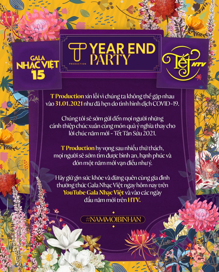 Nối tiếp là sự kiện ra mắt Gala nhạc Việt hàng năm với 200 khách mời là các nghệ sĩ cũng hủy bỏ.