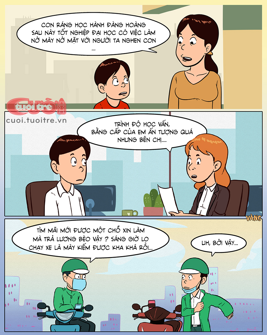 Không những cử nhân mà ngay cả thạc sĩ sau khi ra trường không xin được việc làm liền đổ xô chạy xe ôm, làm shipper với thu nhập trên dưới 10 triệu đồng/tháng. Có ý kiến cho rằng đây là một sự lãng phí chất xám.