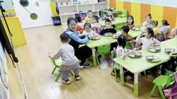 Thấy bà chuẩn bị ngồi, chú cún nhanh nhảu chủ động đẩy ghế lại cho bà.
