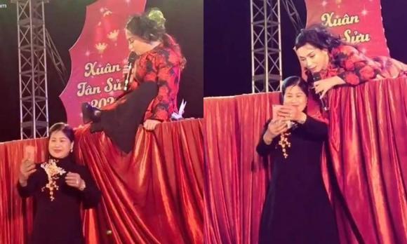 Cụ thể, khi cô đang đứng trên sân khấu thể hiện ca khúc được yêu cầu, một khán giả lớn tuổi đã tiến đến dưới dân khấu và muốn chụp ảnh cùng nữ ca sĩ.