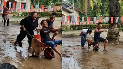 Thanh niên dắt chó đi dạo cầm theo lọ thuốc đỏ troll người đi đường. Dù không bị chó cắn thật nhưng thấy tay dính nước màu đỏ, nên ai cũng 'bật chế độ' đau quằn quại khiến người xem cười đau bụng.