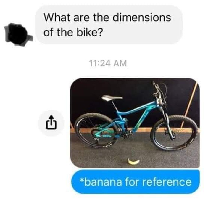 Nai thì cao bằng xe đạp, còn số đo xe đạp là bao nhiêu ư? Một người đã giải quyết bài toán “hóc búa” này bằng cách…đặt một quả chuối kế bên để tiện bề so sánh. Giờ thì ai cũng biết một chiếc xe đạp dài bao nhiêu rồi, hoan hô!