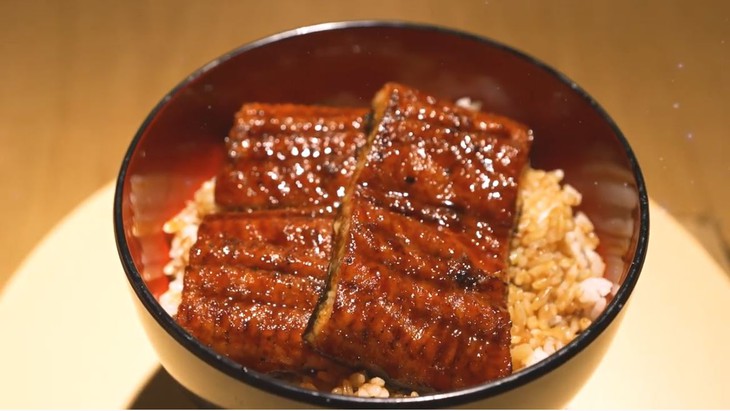 Món ăn thứ hai mà nhà hàng Quán ăn hạnh phúc mang tới cho Dương Vũ và Ngô Đình Nam là món “Cơm lươn gấp đôi”. Thịt lươn chỉ lấy ở phần thân nên sẽ rất mềm, hơn nữa còn được nướng trên bếp than. Khi nướng lớp mỡ sẽ chảy ra vừa giảm độ béo, vừa giúp thịt lươn mềm và thơm mùi khói.